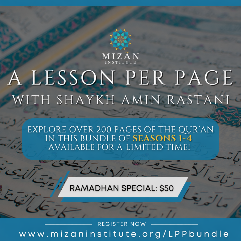• Seasons 1-4 of Lesson per Page: Over the past four years, Mizan Institute has been releasing this series. This bundle covers all previous seasons of LPP, which spans up until page 254 of the Qur’an.